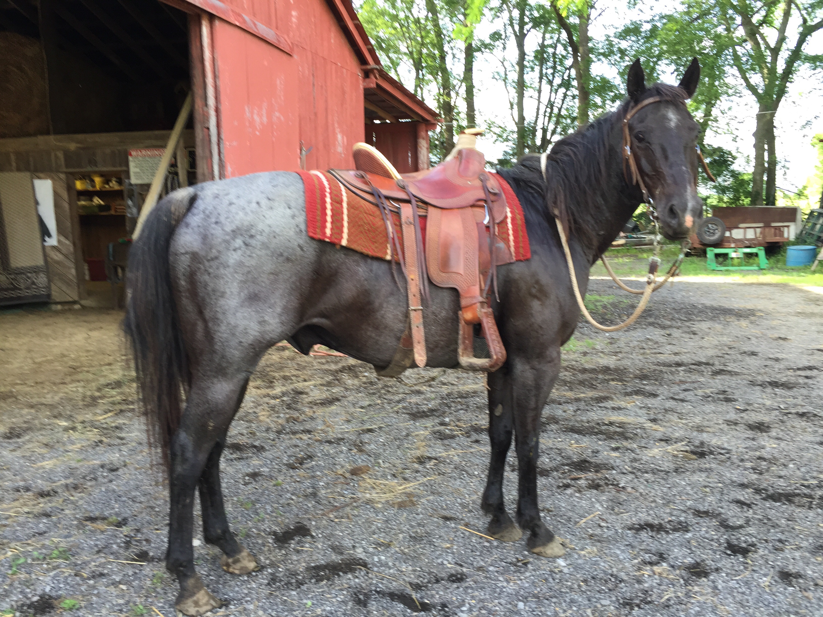 SOLD……..AQHA blue roan gelding, 12 yr old. 15.3 hands. Big and thick. Been shown in all the speed events and knows all the patterns. He has power and can run. Neck reins, lead changes, easy in mouth, stands for everything. Goon mannered gelding. Trail rides as well, nice and easy. Not a hot mannered gelding. Drop the reins and ride off.