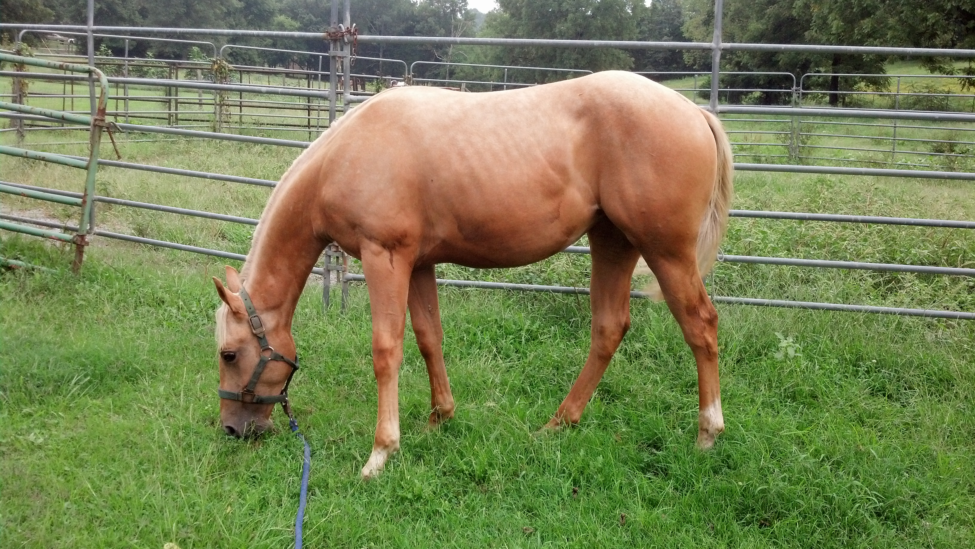 SOLD———AQHA golden palomino filly with 2 white socks, born 5/26/13. Sire is MC Jazz and dam is Ole Poppers Wampie. papers list of Dual Pep and Poco Diegos Jessie. This filly has a soft eye and a kind mind. Can be caught anywhere, comes to you, very gentle and anyone can handle her. Real sweet. Leads and loads. Handled since birth. Coming 2 in May and ready to be started in any direction under saddle. Coggins and fresh trim. $1500 615-574-5909