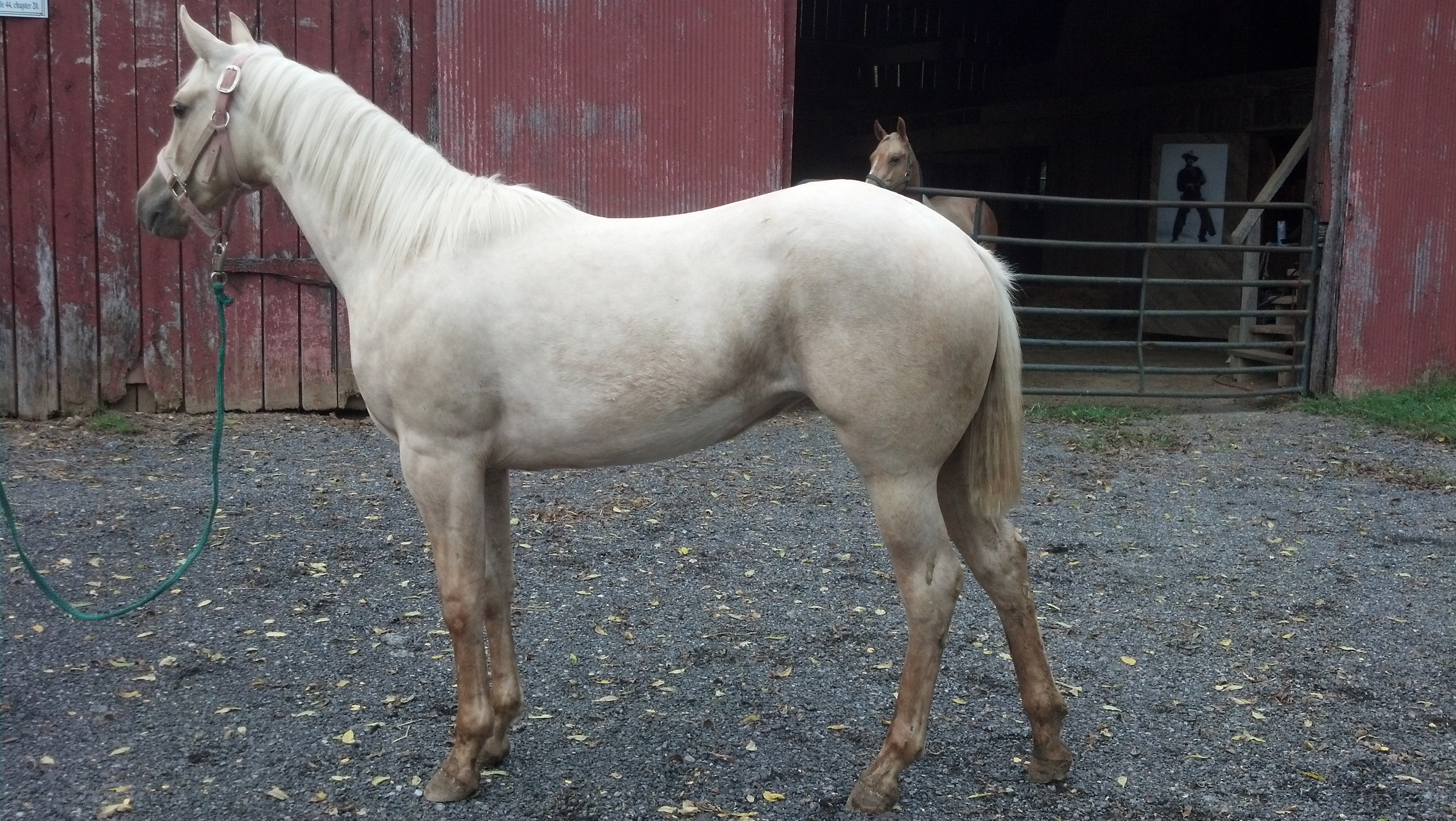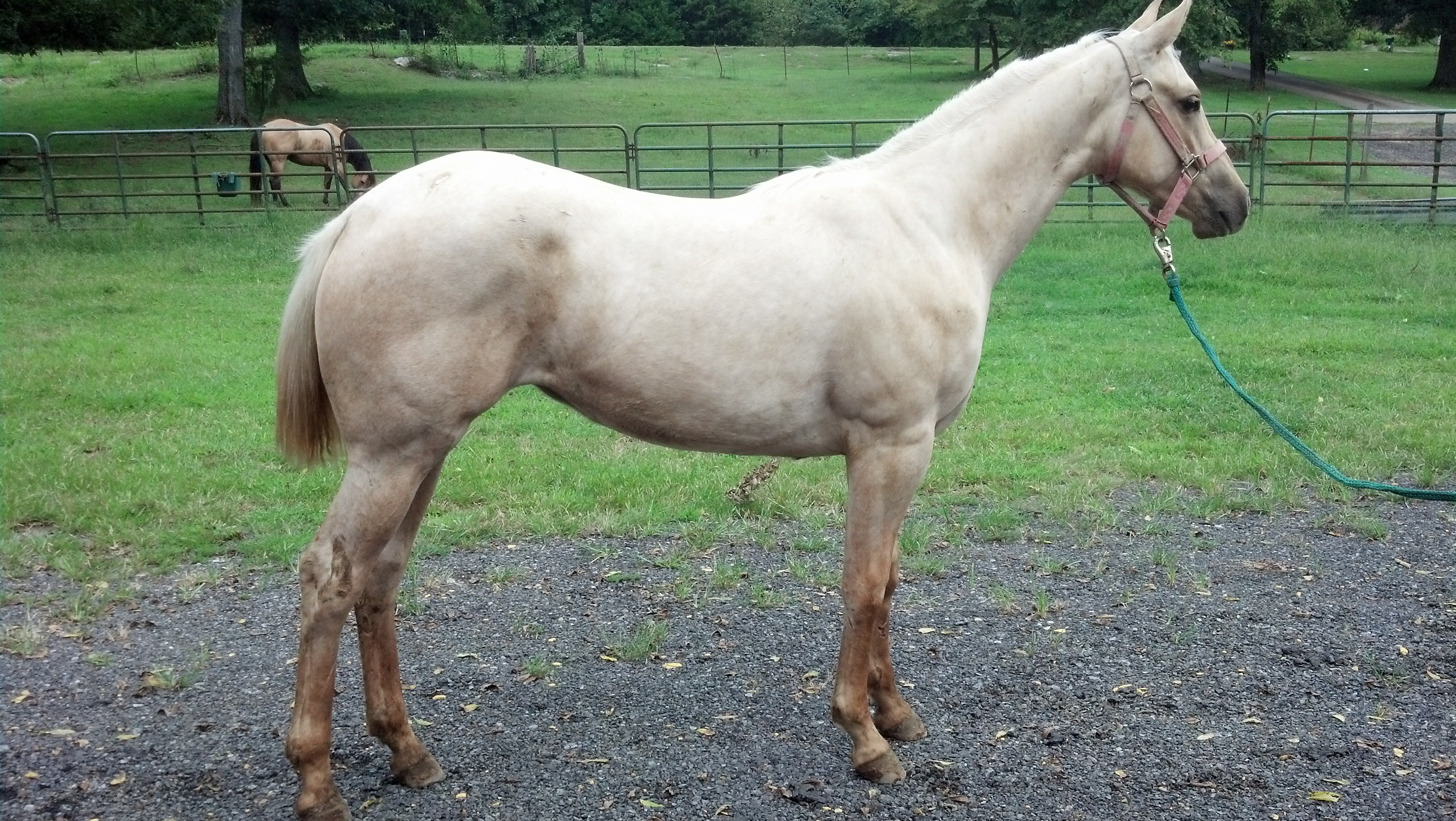 SOLD———–AQHA palomino filly, born 5/59/13. Deep in hip and chest. Great build and correct in every way. Good mind and a quick learner. Sire is a Eyed Be White Hot and dam is Slapjack Oak. Listed on papers are Er Hot Chex,Nu Chex to Cash,Two Eyed Red Buck, Doc Solis, Doc Bar and Doc Oaks. Blue papered filly that can go in any direction from arena to outstanding broodmare.
