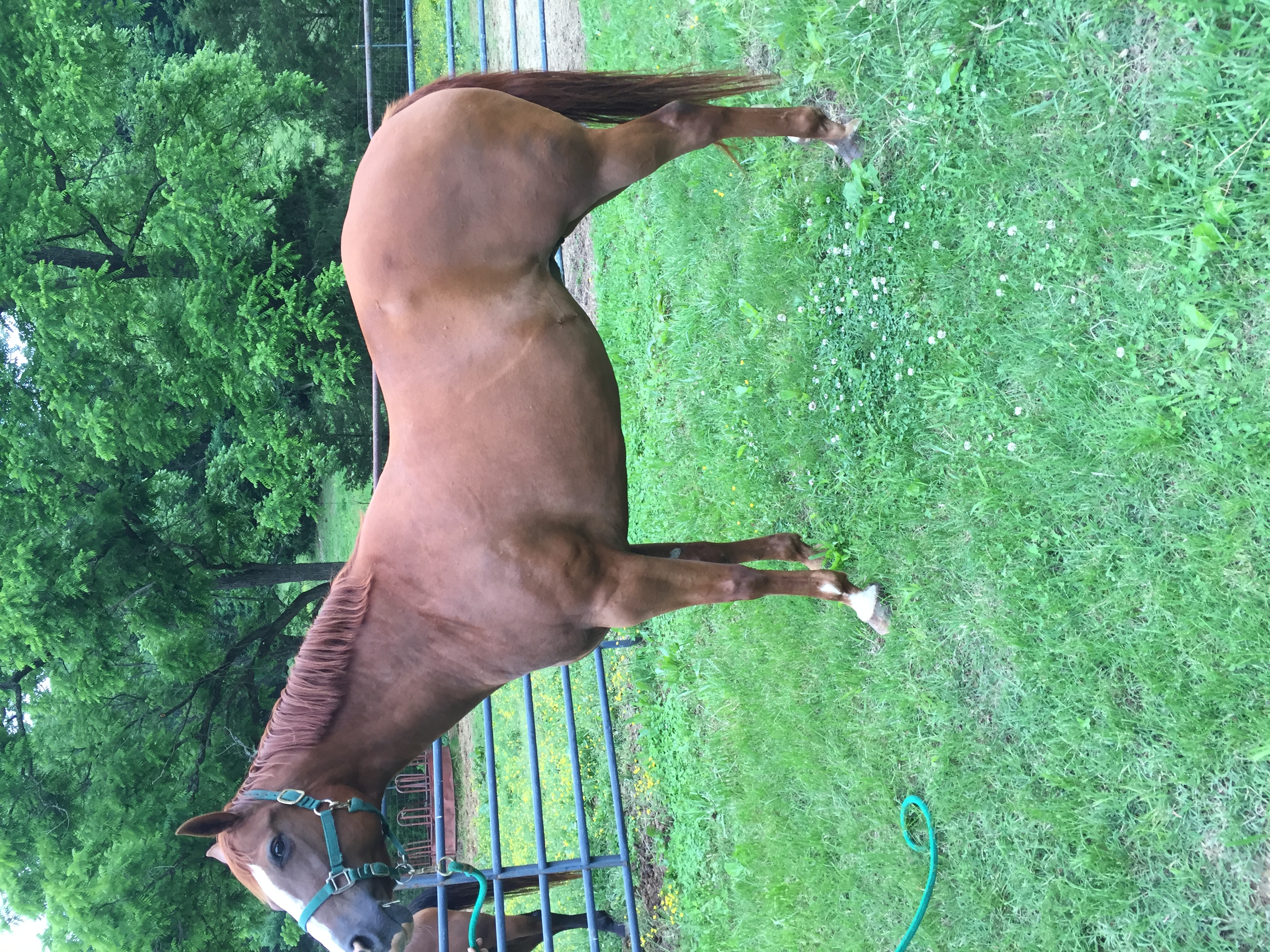 SOLD…..AQHA sorrel mare. 15 yr old and 15.3 h tall. Nice mare very laid back. Ridden at early age and then raised foals. Bred to Tuff for April 2017 foal.
